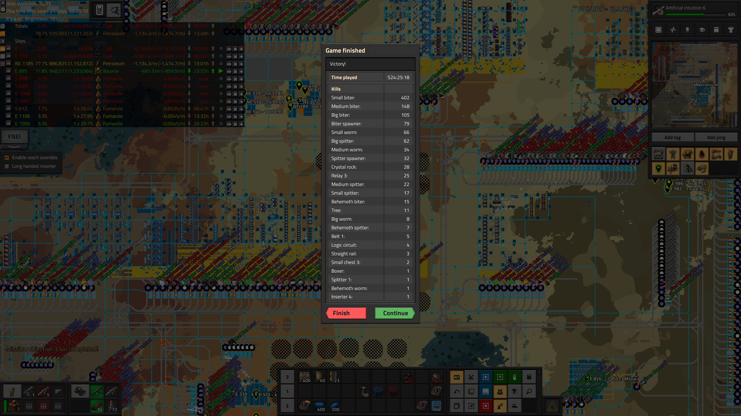 I must say that was long and rocky journey but I finished it. Wish that I new much earlier how bio part with artillery worked, that would saved me like 150h alone. Othewise very fun and refreshing modpack