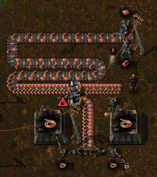 Interesting.. I used wood for the test because it burns faster and purposely waited for one to run out.. although since this idea is to make it a messy difficult base to 'fix' maybe i'll toss in a bit of both designs..n9103 wrote:Burner inserters will being looking for fuel as soon as they don't have a piece in reserve, and otherwise acting as normal.