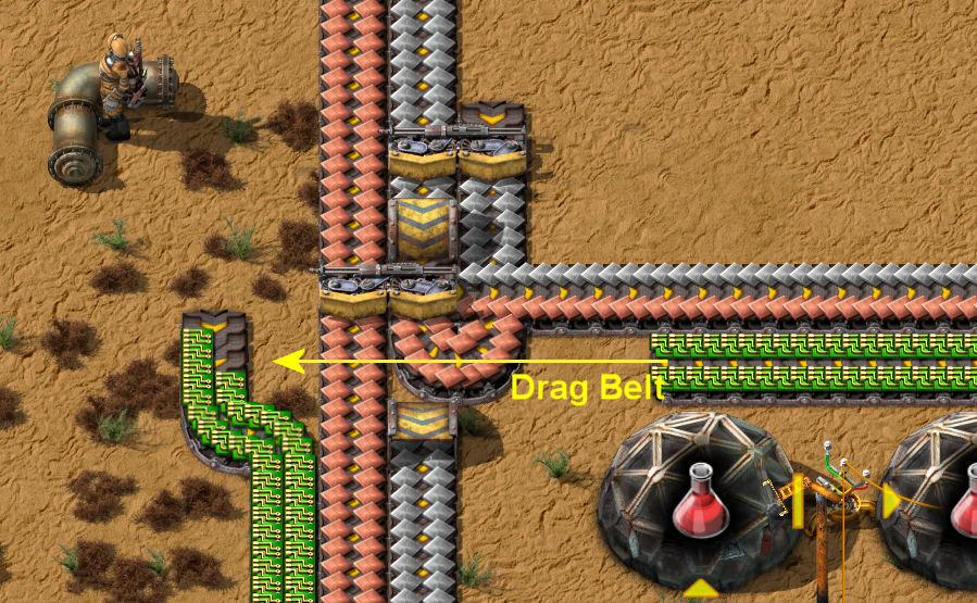 Bad interaction between smart drag automatic undergrounds and opposite direction belts