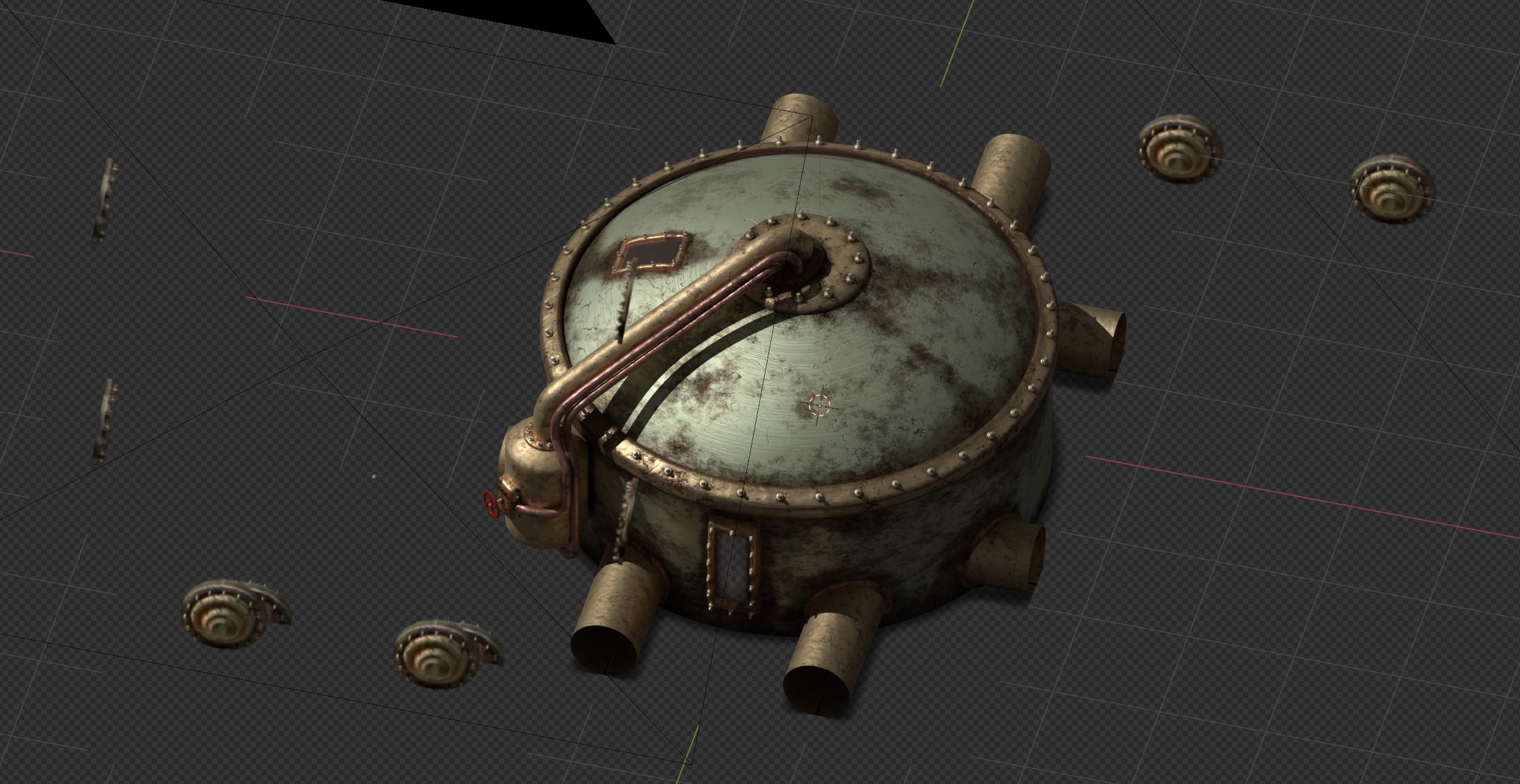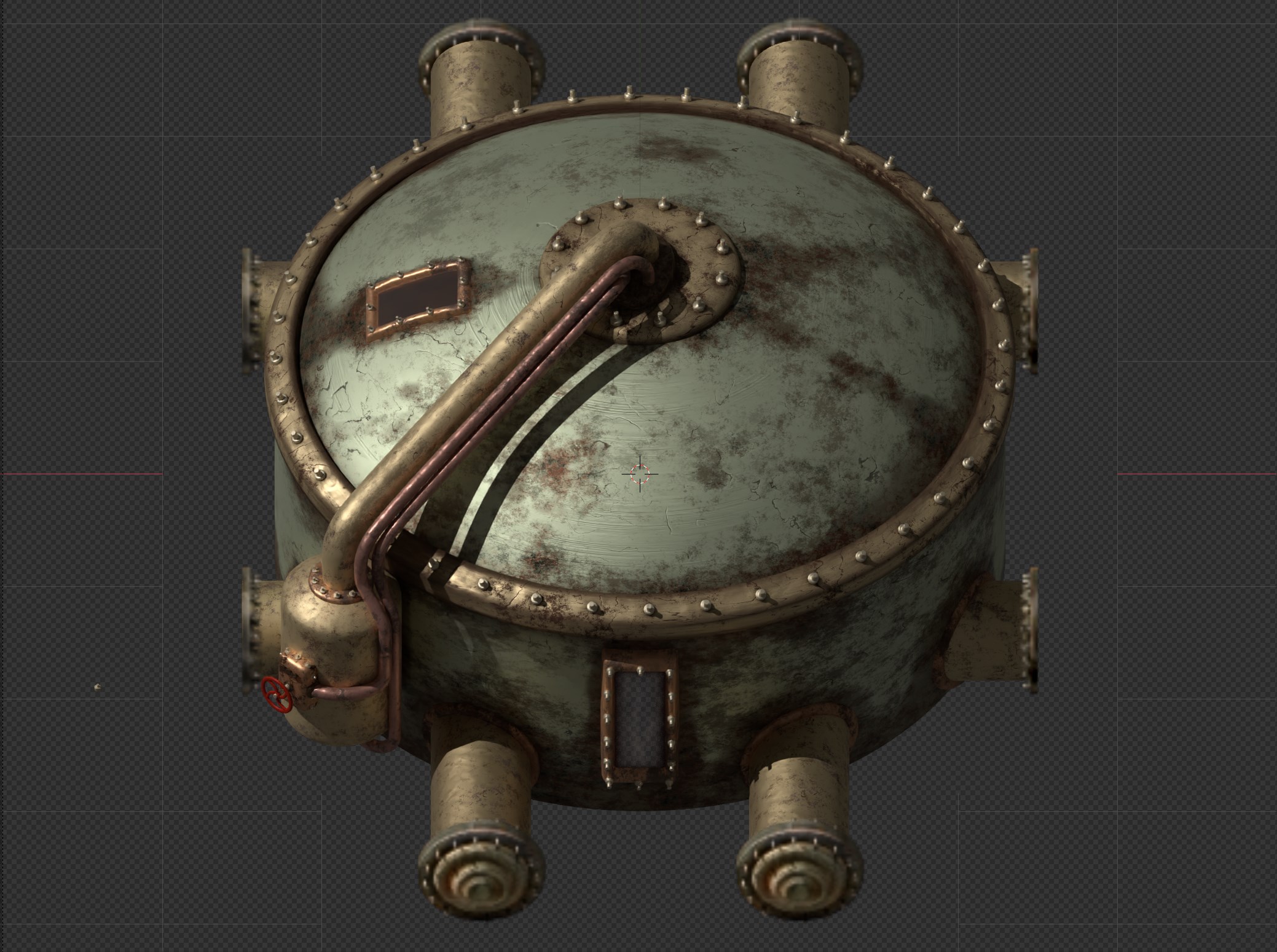 It was made using Blender 3.3, it seems to work fine too with the newest Blender versions, but for some reason the rivets around the tank windows got wrongly rotated.