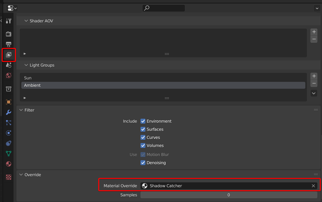 For the “invisible” brown ground, I went to Object Properties > Visibility > Ray Visibility, and unchecked “Camera”, so that we can’t directly see it, but that it can still affect the light as if it was there.