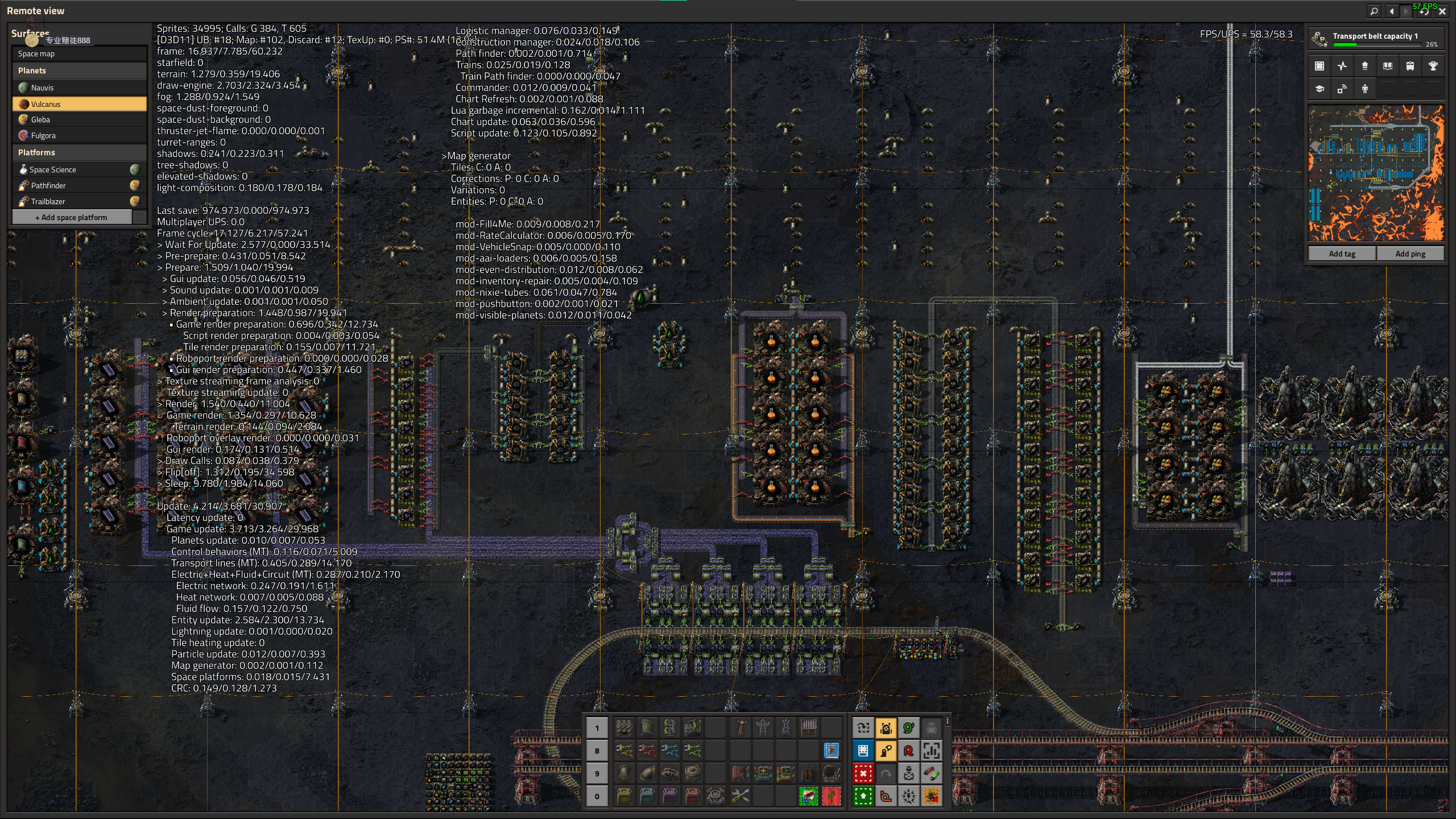 Can you reproduce it also with Texture compression graphics option set to High quality? At the moment, you have it disabled, which makes all Space Age and mod sprite atlases take up over 10 GB (so we don't even offer this option in the graphics settings), but you have only 8 GB of video memory, which may have caused the poor performace, as the driver is constantly moving textures between RAM and VRAM, or GPU is reading textures from RAM, which is much slower than accessing them in its VRAM.