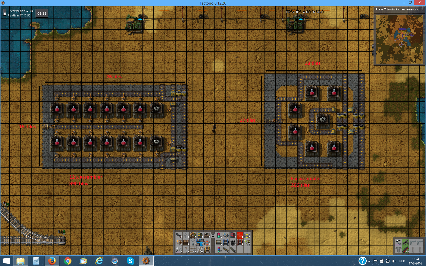 Would be interesting to know how many tiles you are using here and how many you would use if you would go for a compact but not square layout and if that would satisfy your OCD. I think if you build the science assemblers in a line, they are still compact, thought not in both dimensions, and waste less tiles cause its easier to build the next section much closer.
