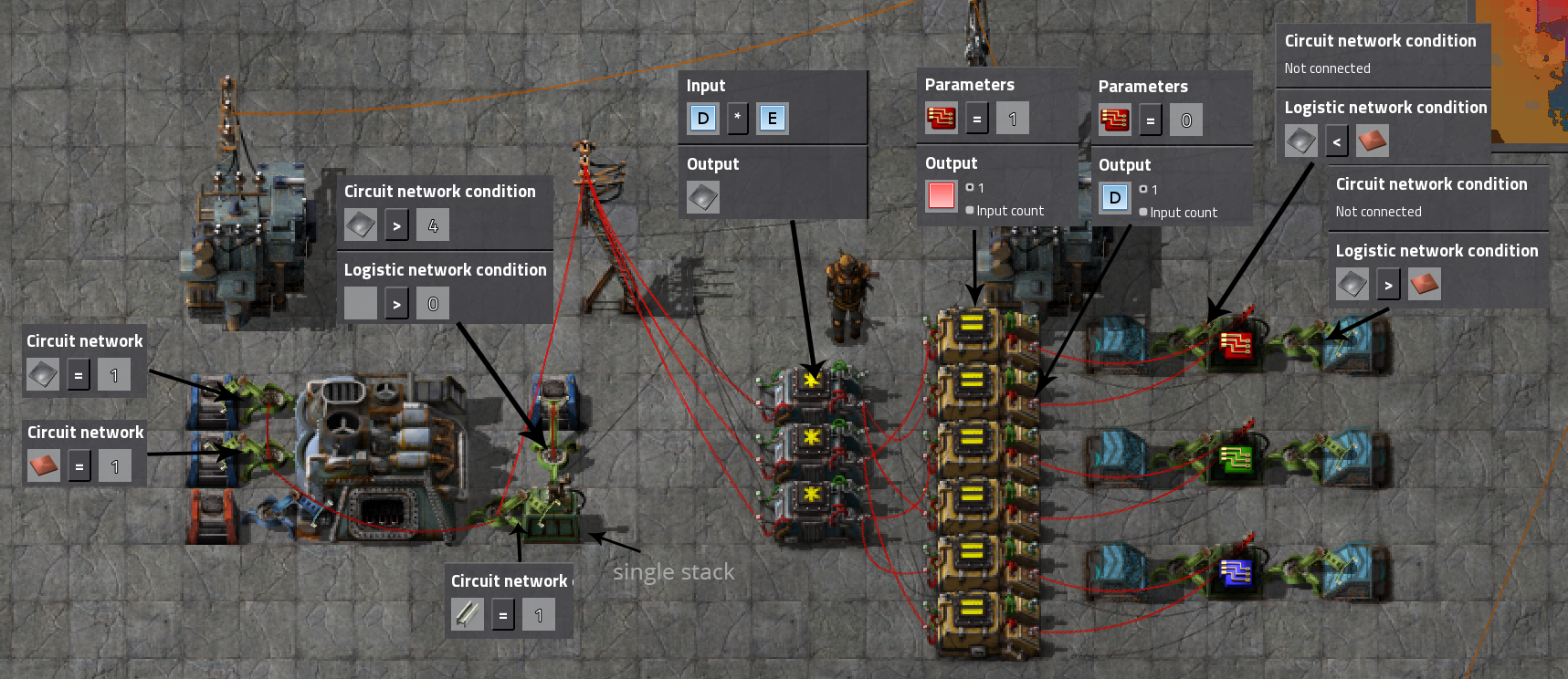 I've seen the concept of a Smart Furnace implemented in a couple places and the idea struck me as a good one, a furnace infrastructure that smelts the type of ore you need when your supplies are low. I've managed to implement a basic one for iron and copper with relatively little effort and a circuit network but I run into problems when I try to add in steel. It's not the logic circuits that trip me up but rather the switch from steel to one of the other types tends to leave a number of iron plates behind in each furnace that didn't form a full steel crafting cycle before the smart furnace attempted to switch to another ore type. I'm trying to wrap my head around some way to either extract the plate from the furnace if steel isn't on the menu, or maybe use some kind of buffer management for the input. I'm not aware of any way to do the former and the latter seems complicated and I doubt I'd have room to implement it inside my beacon layout. Does anyone have any thoughts on the matter or have any experience messing around with steel in a smart furnace?
