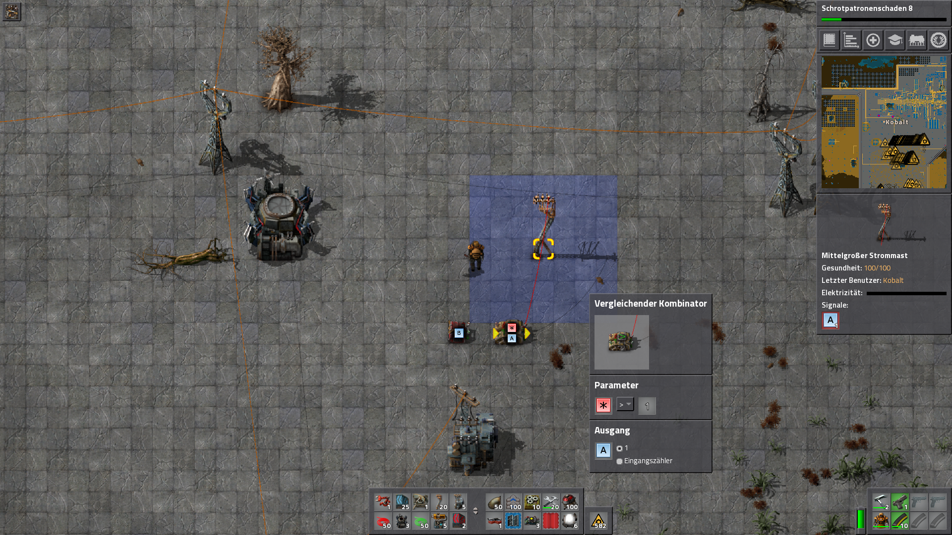 I tried to do a set up with a decider combinator "everthing > 0" output "A = 1".