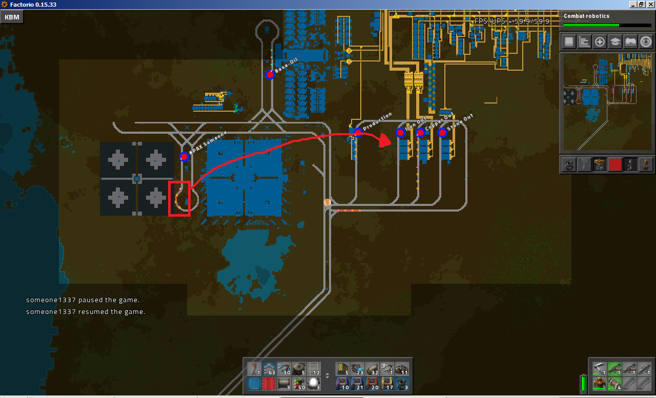 (but current train routing sucks! The penalty for occupied blocks should be a *lot* lower, and I think the system should refuse routes that are X tiles longer than the shortest route that does not cross other stations...)