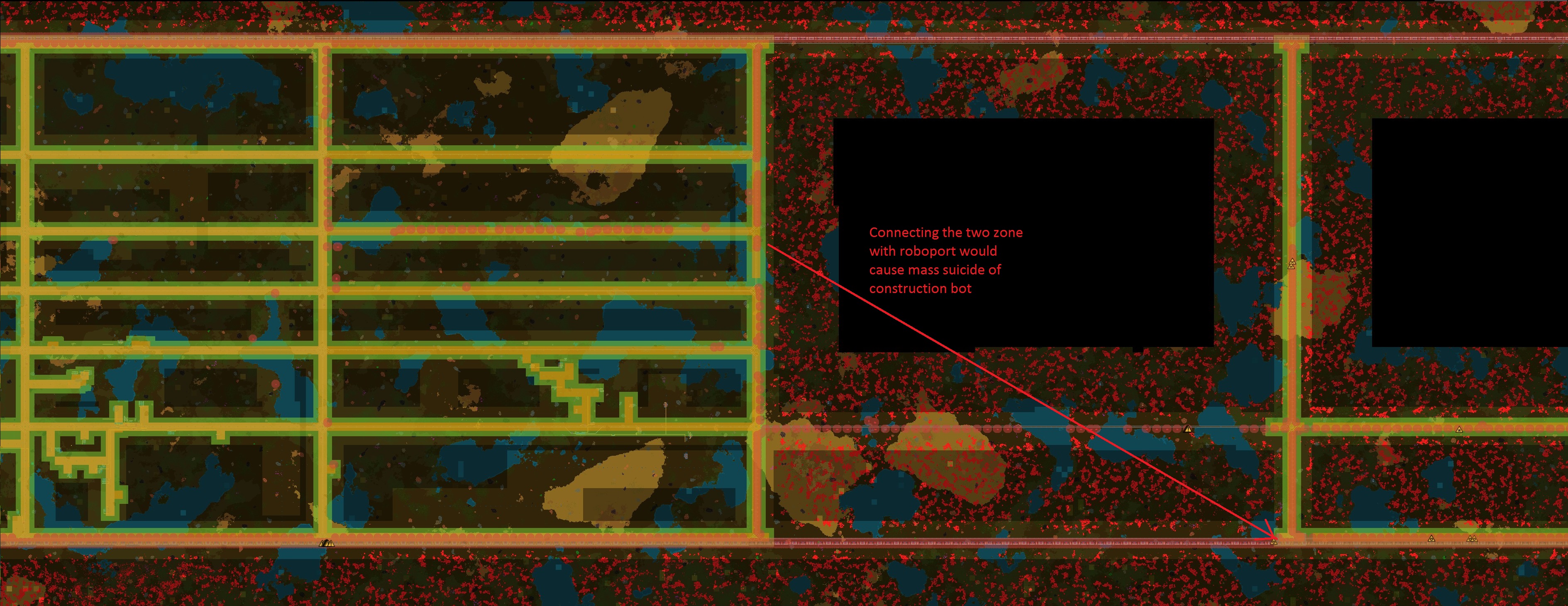See what I mean Just for info on the picture scale, the grey bands are exactly the width of the red zone from roboport