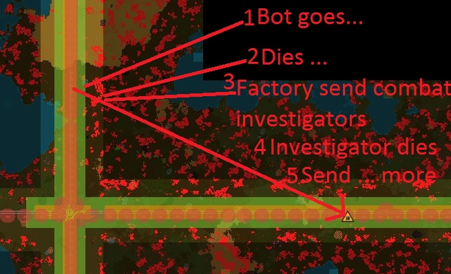 Use our suicidal contruction bot to tell the factory should send some combat bots where they just died. We all had the issue that those construction bots love to travel straigth, ignoring any danger on their course. Instead of mourning the loss of one more construction bot, player could make use of this (note : it''s not a bug, it's a featureWhy ?
