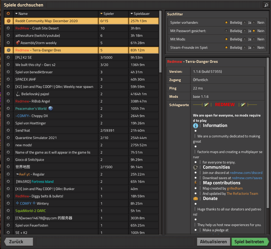 If i try to mark the "Redmew - Terra Danger Ores" Server as my favourite it marks several Redmew Servers as my favourites.